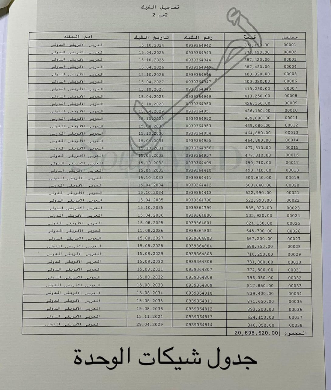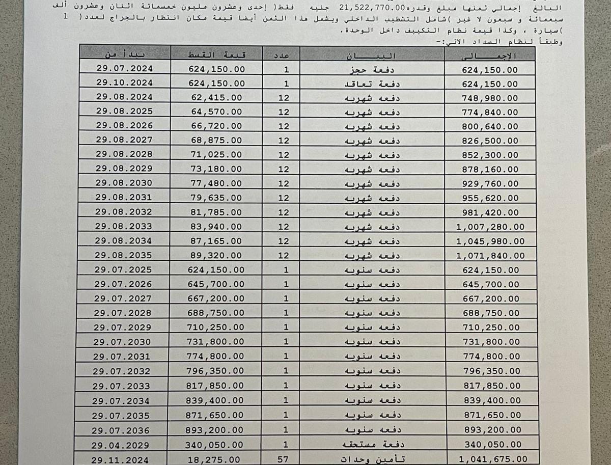 المدفوع حتى شهر أكتوبر 2025: 3,228,150 جنيه (شامل أول قسط في الوديعة)