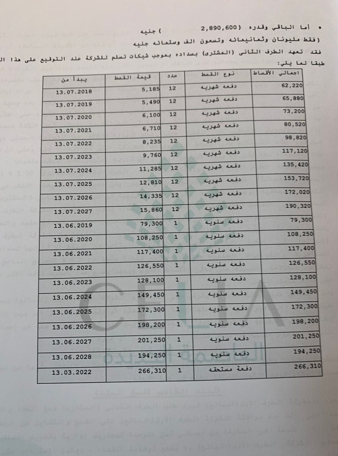 إجمالي العقد: 3,049,200 جنيه