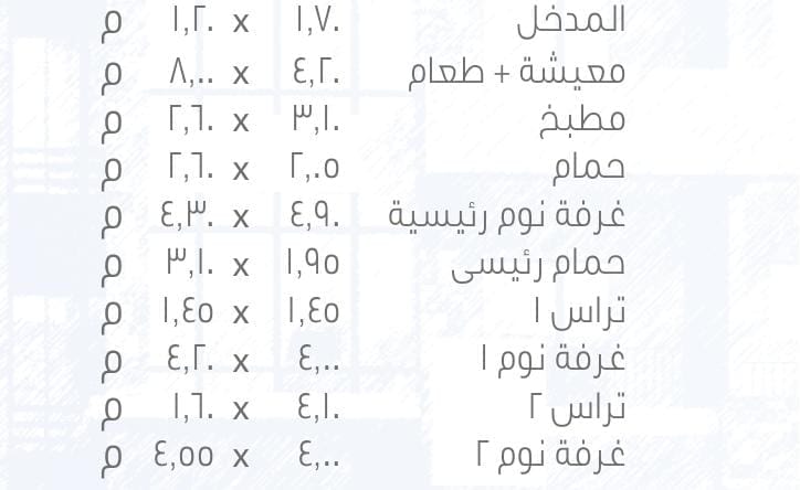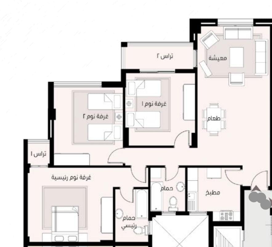 عدد الغرف : 3 نوم (منهم غرفة ماستر)