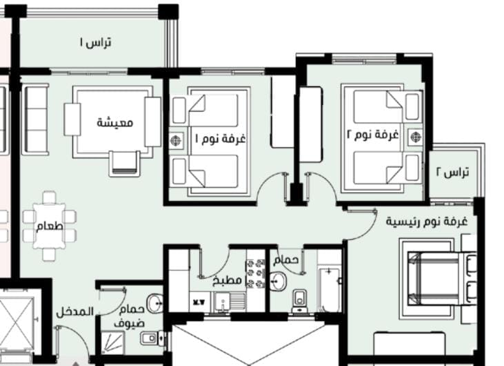 عدد الغرف : 3 نوم
